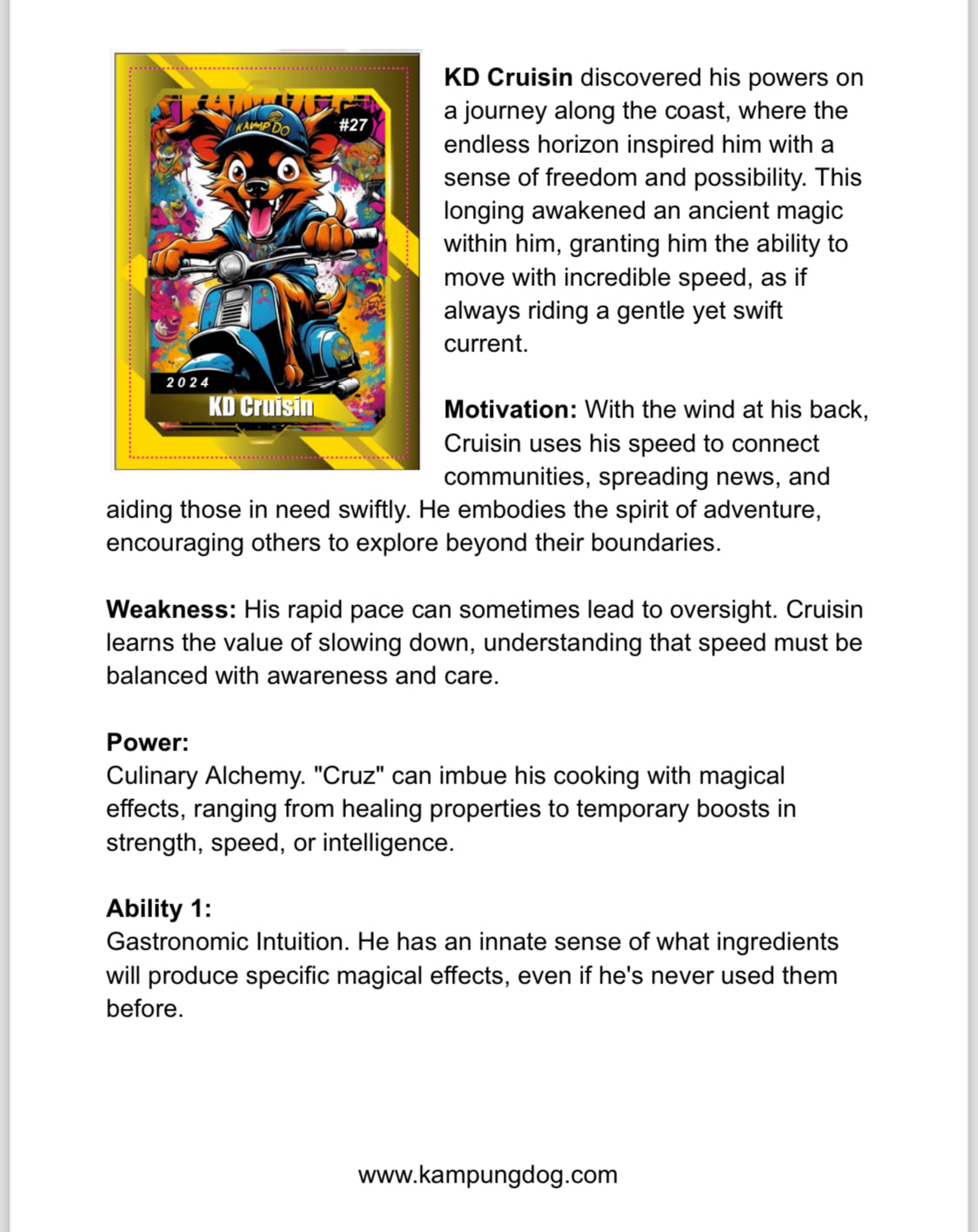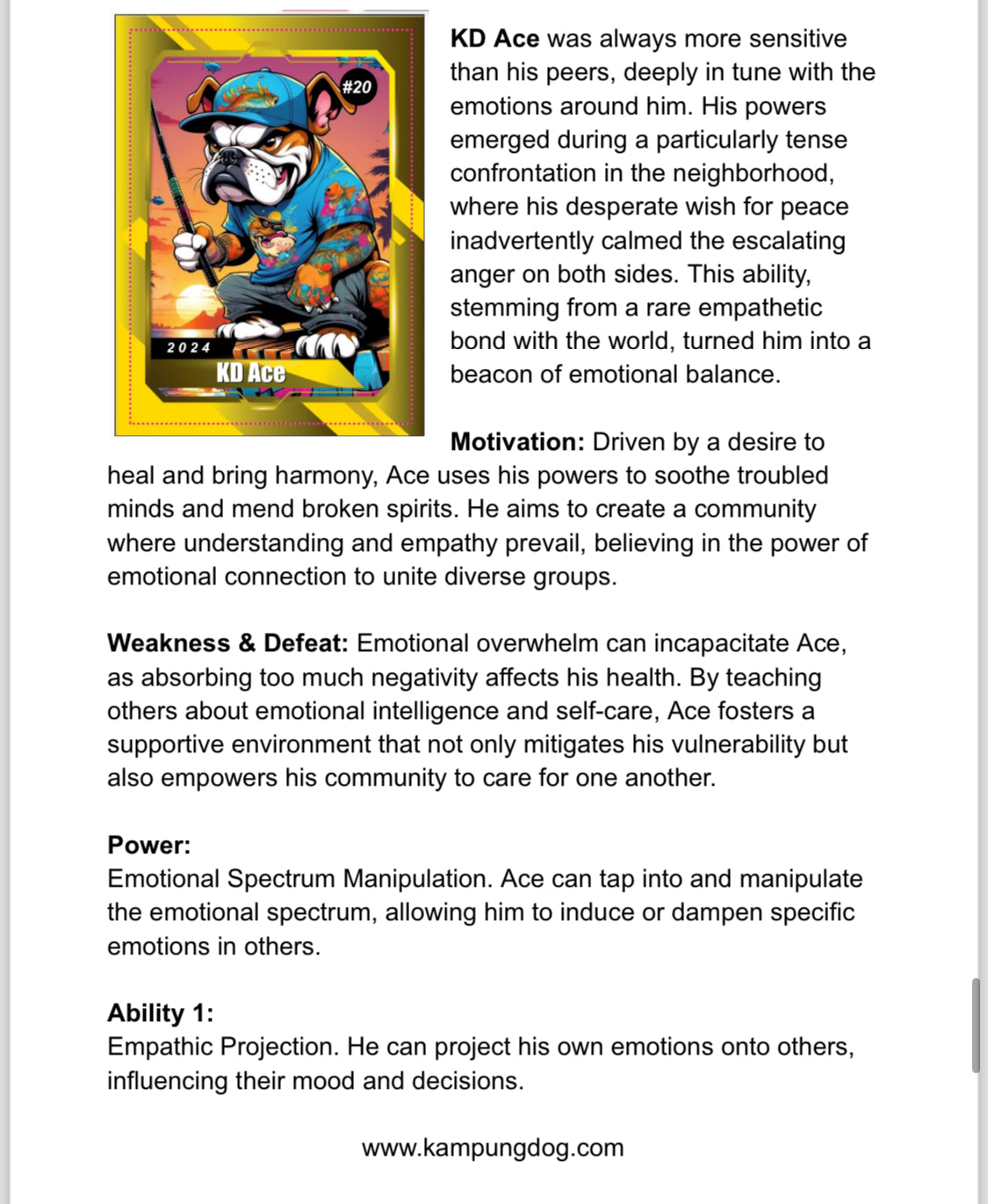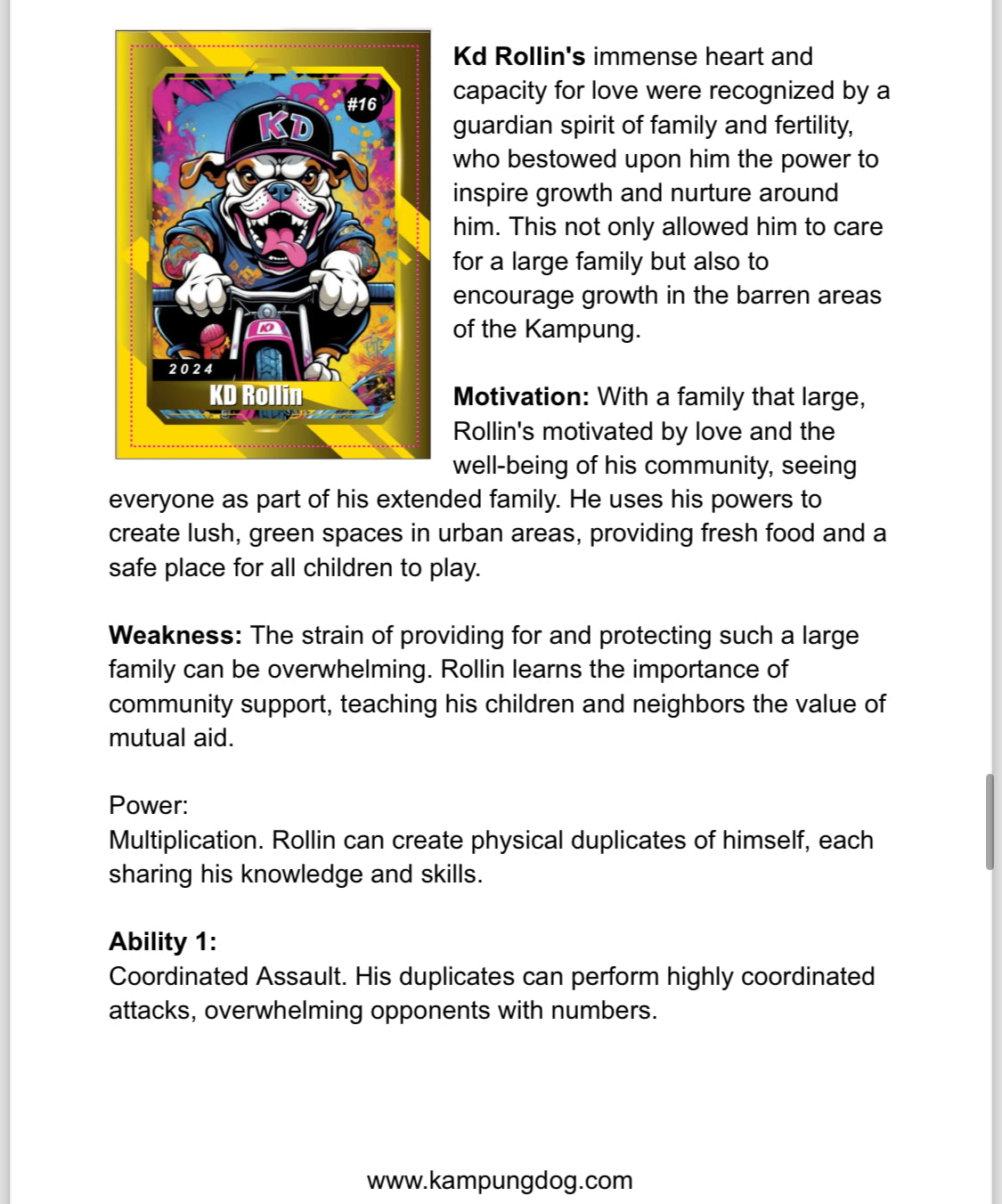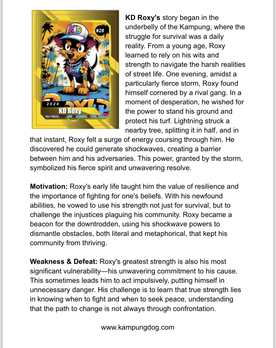 These super-powered pups are the Kampung Krew, ruling the streets and beaches of East Prompton. Forget pedigrees – these dogs hail from the slums to the beach. Each has a unique tale, transforming from scrappy strays into local heroes.