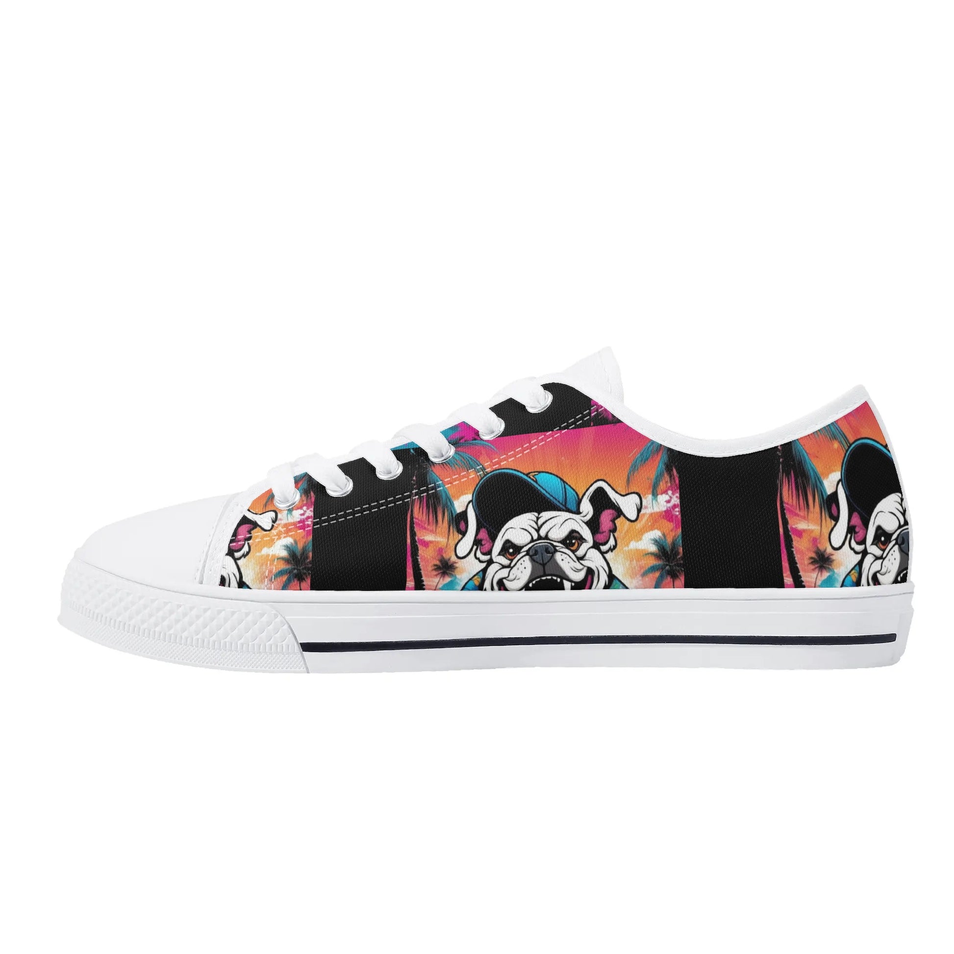 * Custom all over printed shoes with 6 eyelets lace-up closure and low top construction for a snug fit.